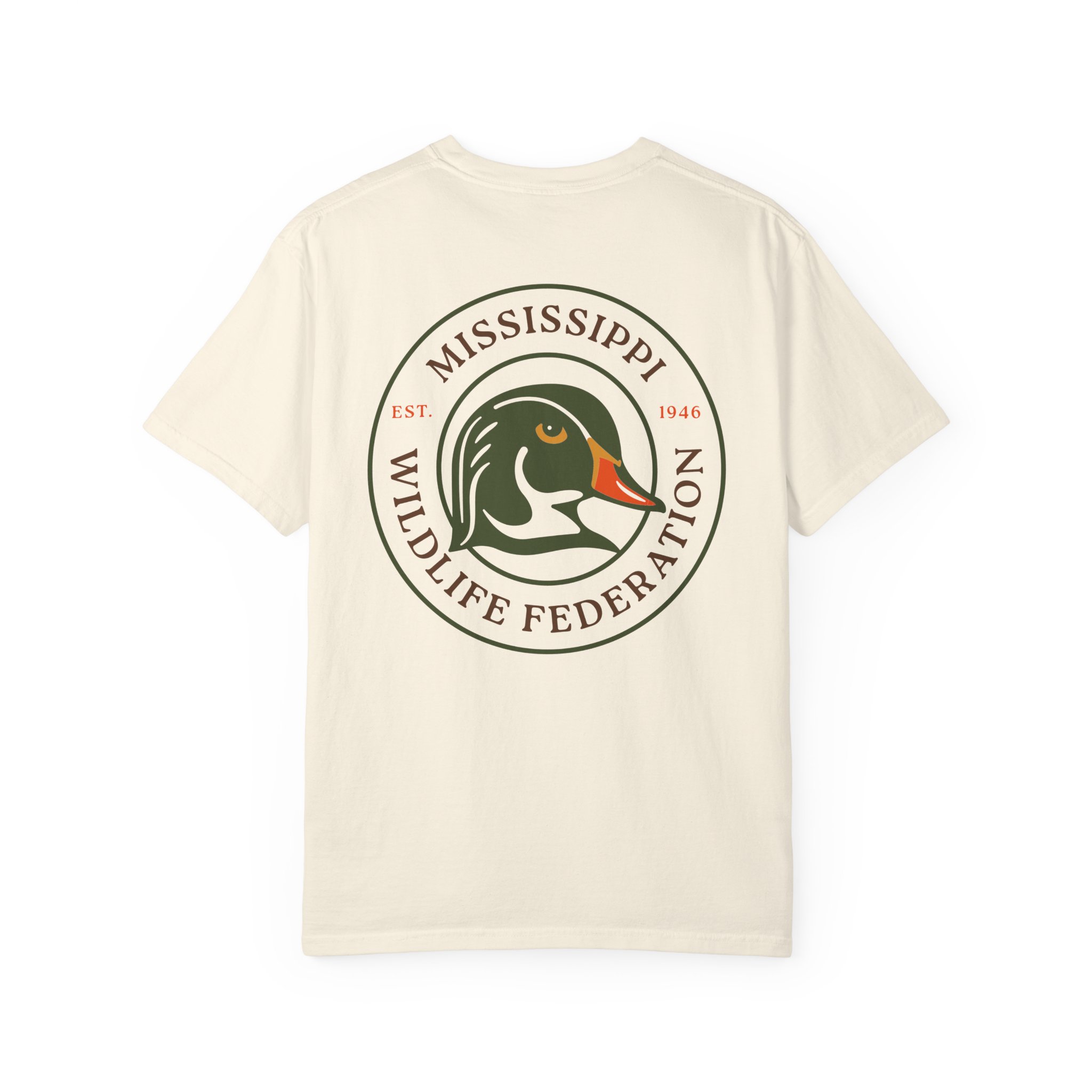 Show your support of the Mississippi Wildlife Federation in this Comfort Color short sleeve shirt. Crafted for both comfort and a laid-back aesthetic, this tee provides a soft touch against the skin, making it an ideal choice for everyday wear or a hard work day at the hunting camp.